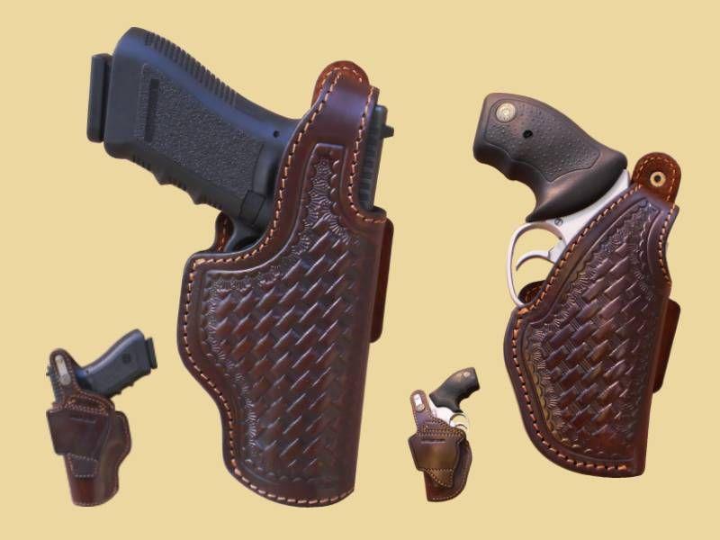 Es una funda de rapida extraccion.Consiste en empuñar el arma y simultaneamente con el pulgar destrabar la tira de seguridad. Frente grabado Basket (trenzado de mimbre).