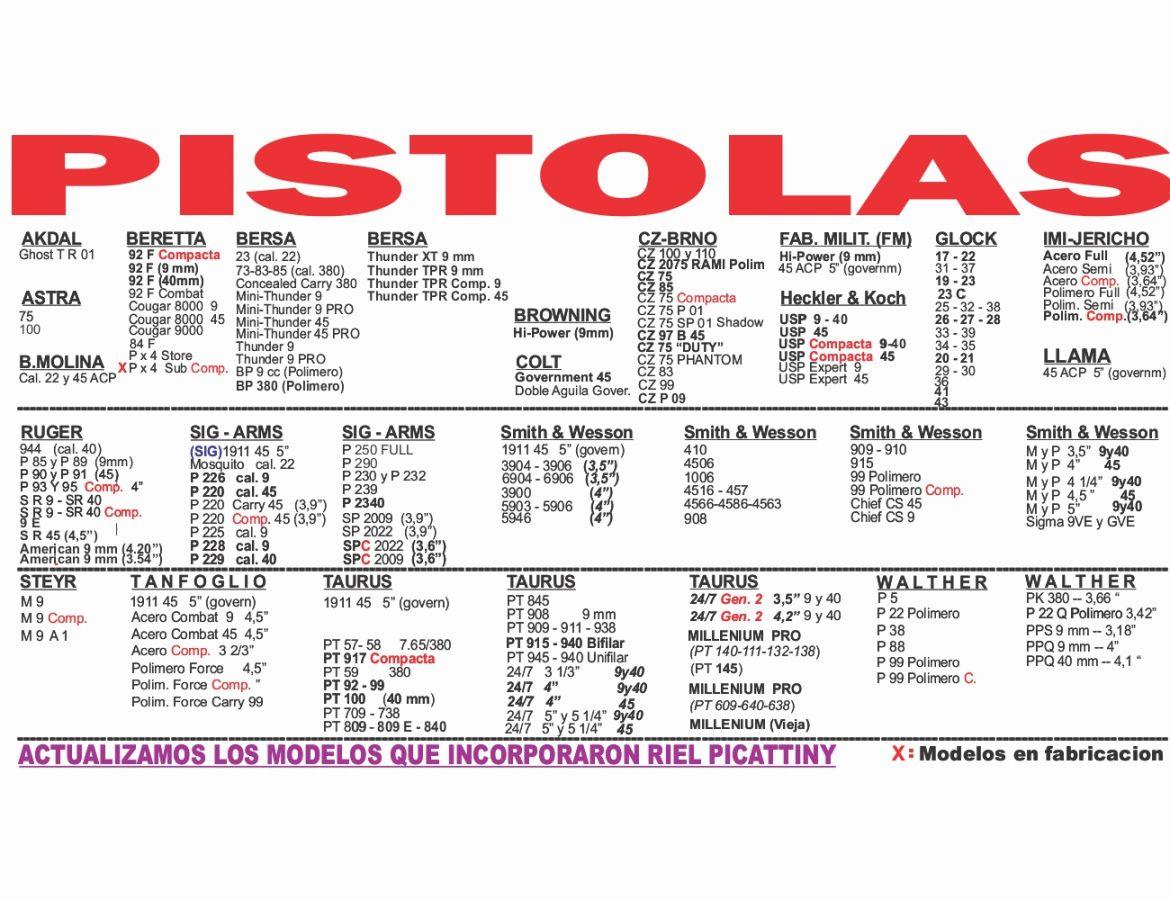 * Pistolas: hasta 5"