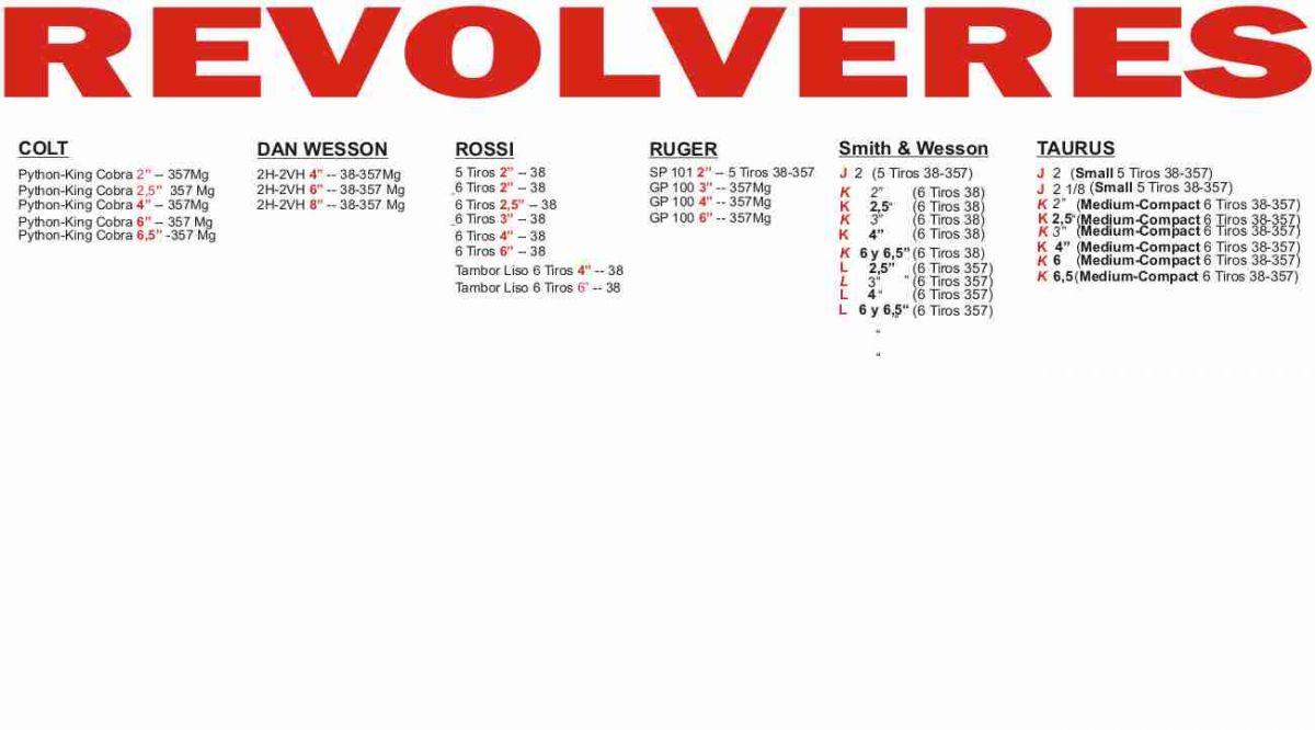 * Revolveres: de 2" a 6,5"