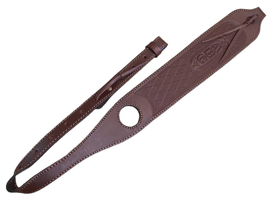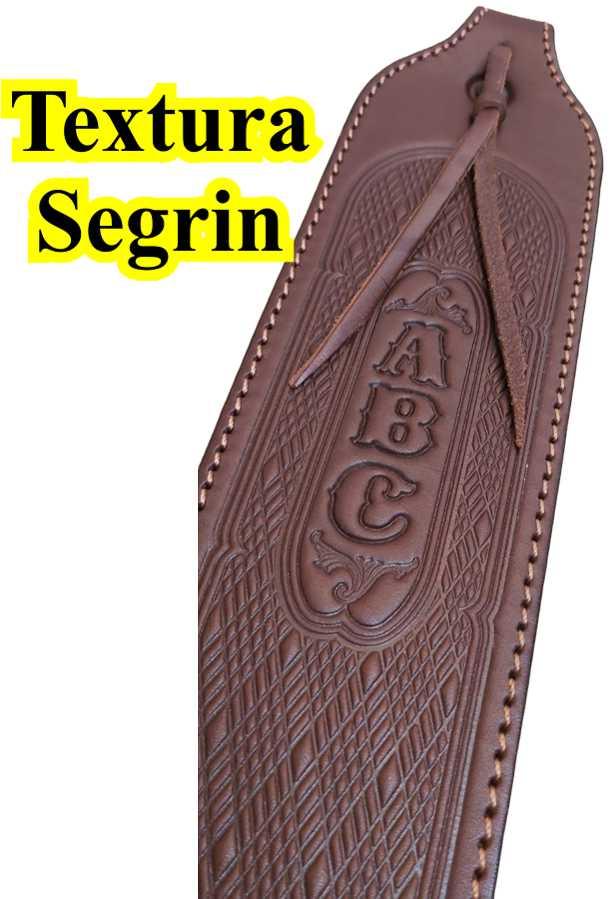 El modelo Cobra Grande Segrin se fabrica en suela color y su forma ancha arriba (promedio 7 cms ) afinandose hacia abajo, simula una cobra. La zona en contacto con el hombro esta forrada en cuero gamuzina.