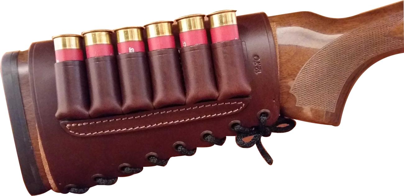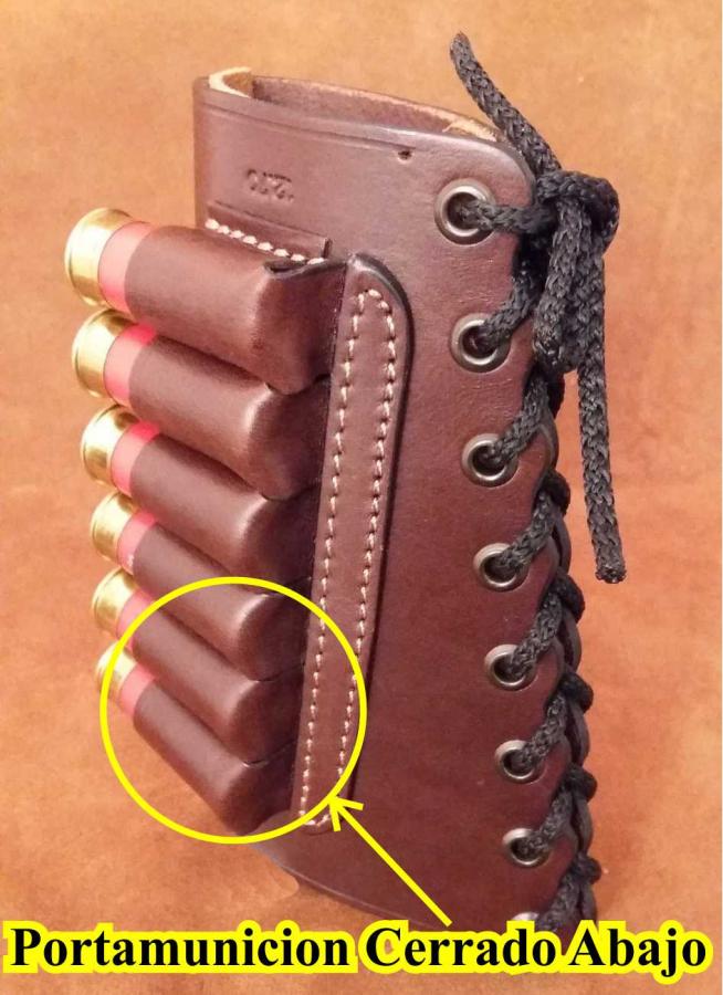 Construida en cuero de 3,5 milimetros de espesor , aloja hasta seis cartuchos para todos los calibres de escopetas disponibles.