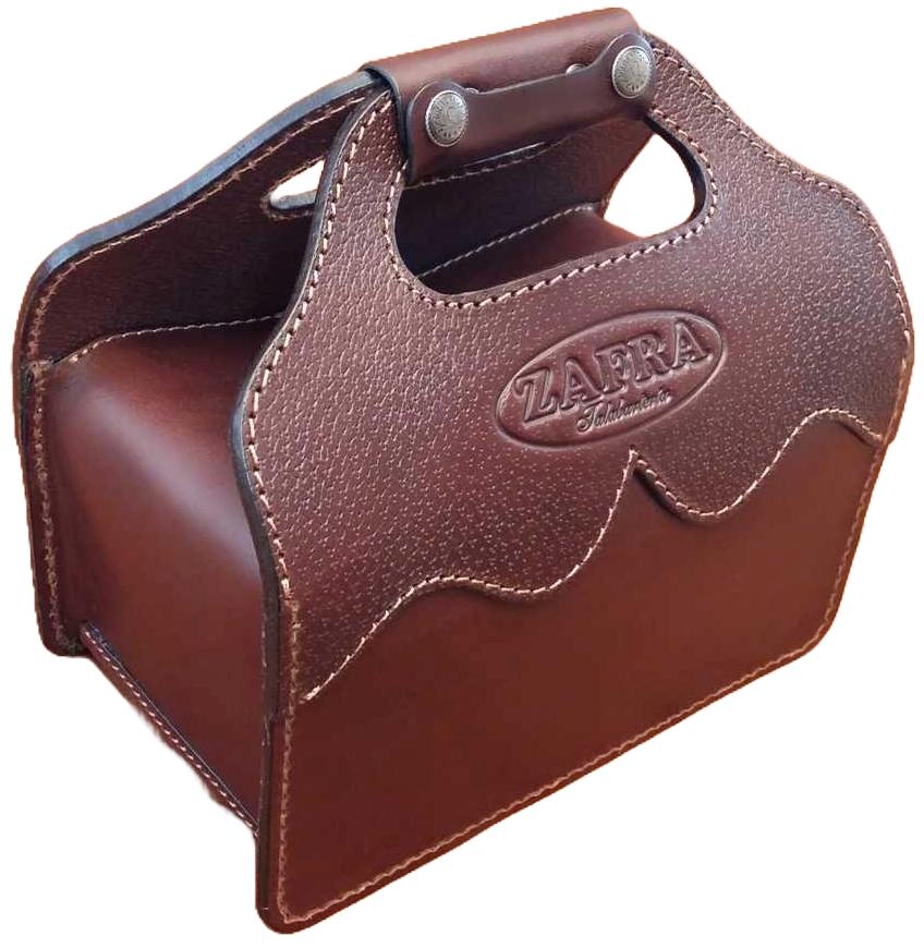 Confeccionada en cuero flor. Manija reforzada con cuero flor grabado chancho cosida y pegada. Bordes pasa mano redondeados.