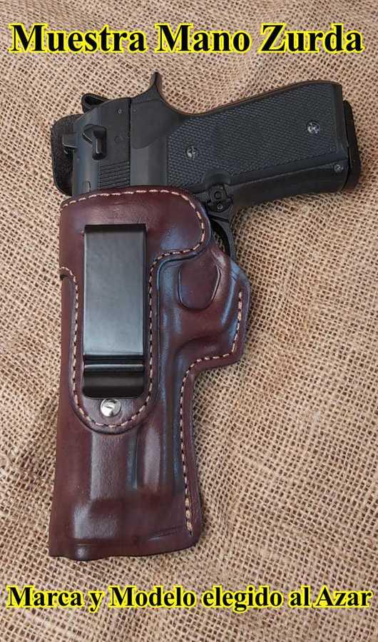 * FLEJE DOS : En boca de pistolera, impide que la funda se aplaste dentro del pantalón al desenfundar el arma, a la vez que facilita el enfunde.