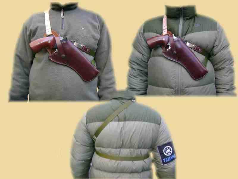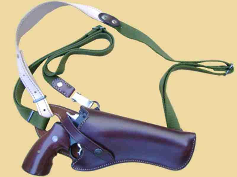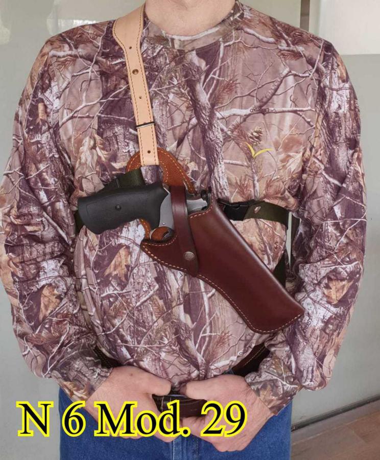 Ideada para transportar un revolver de gran tamaño en forma comoda y segura, especialmente en una caceria a pie o a caballo. Esta bandolera cruzada, nos permite llevar una segunda arma para mayor seguridad.