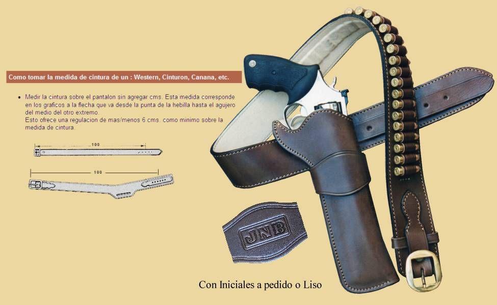 El cinto es recto y aloja 25 municiones moldeadas a mano. A pedido se pueden grabar iniciales y logos en el frente de la. pistolera. Conjunto de cinturon y funda que tambien pueden adquirirse por separado.