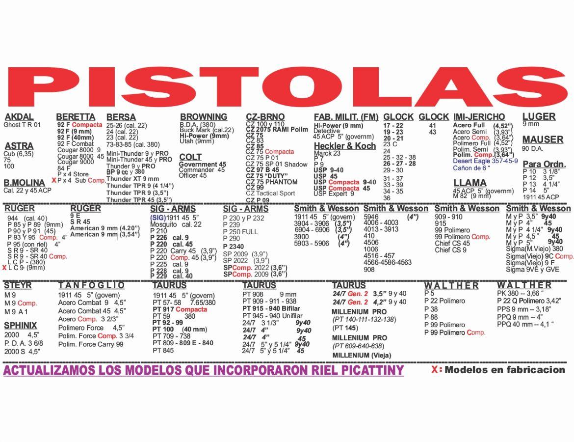 - Pistolas: de 2" a 5"