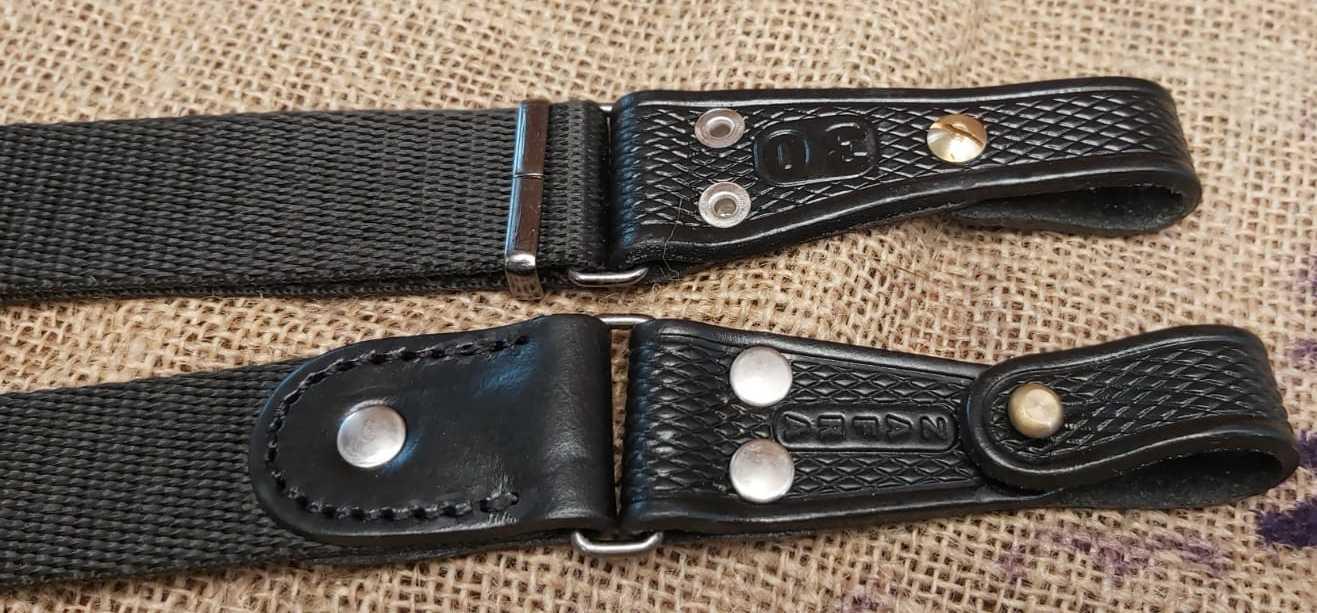 Elaborada con cinta P.P. tejida (GALON) y terminales en cuero doble grupon. Con botones de bronce. Largo ajustable con dado doble.