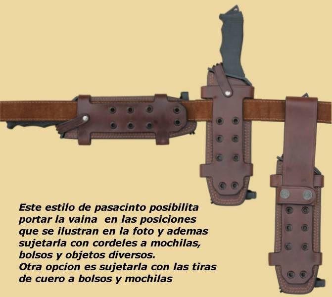 Esta es la version con el maximo posible de combinaciones que incluye: 3 posturas a la cintura, atadura a mochilas, bolsos u otras necesidades, mas un porta firesteel y porta objetos para variados accesorios.