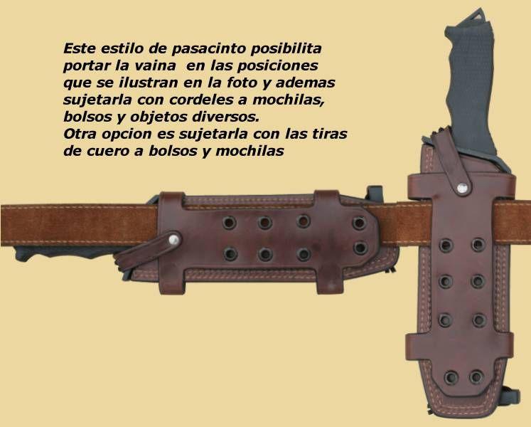 Esta version combina: 2 posturas a la cintura, atadura a mochilas, bolsos u otras necesidades, mas un porta firesteel y porta objetos para variados accesorios.