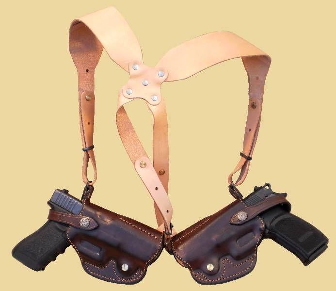 La posicion horizontal del arma y la hombrera construida en cuero natural brindan una gran comodidad y hacen muy confortable su uso. Moldeada a mano , con canal protector de guion y abierta. Para llevar dos armas simultaneamente.
