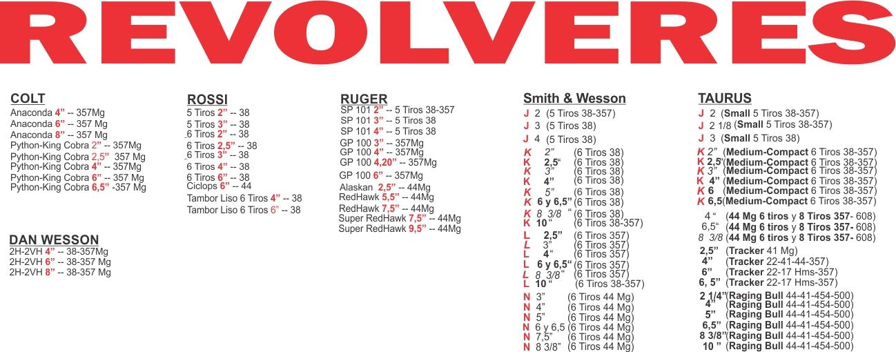 * Largos de cañon mayores de 5": CONSULTAR PRECIO
