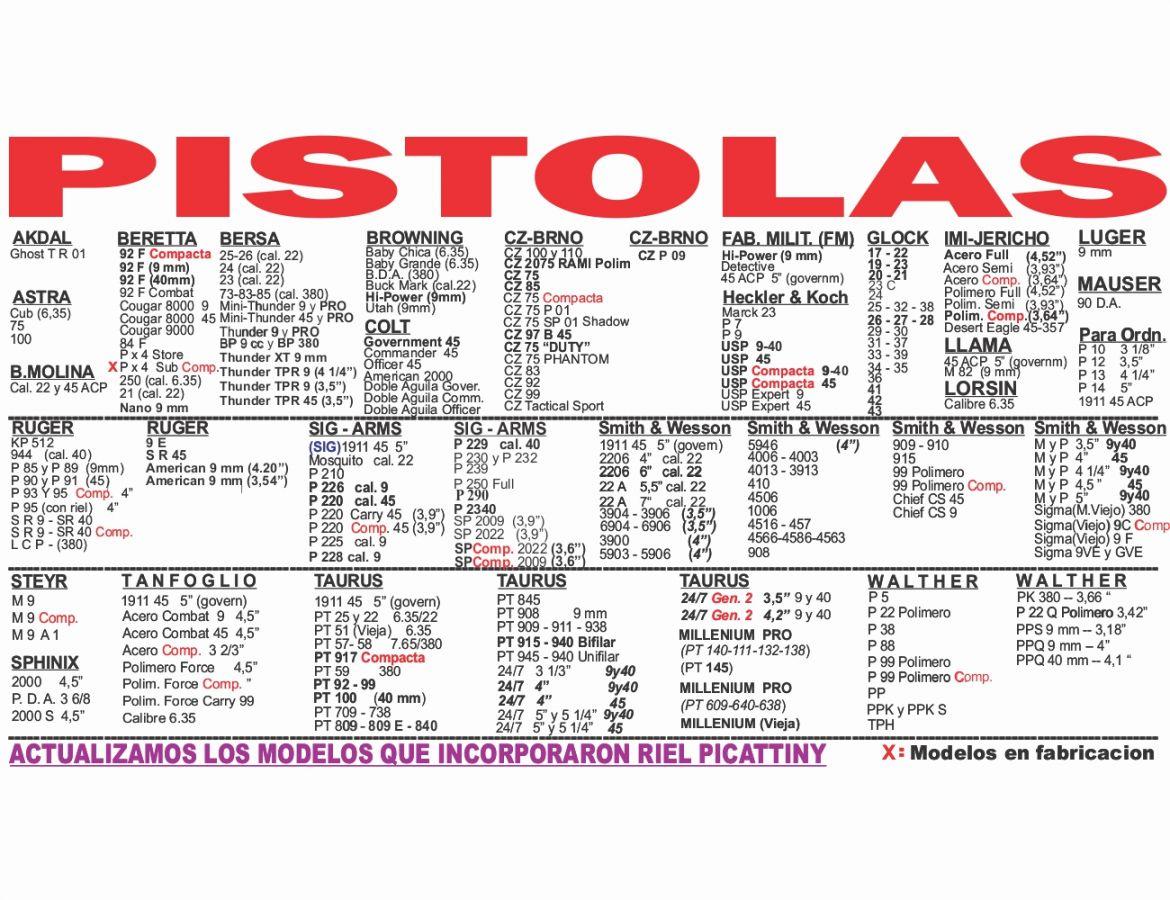 Contamos con mas de 200 replicas de pistolas, teniendo en cuenta marca, modelo, largo de cañon y calibre.