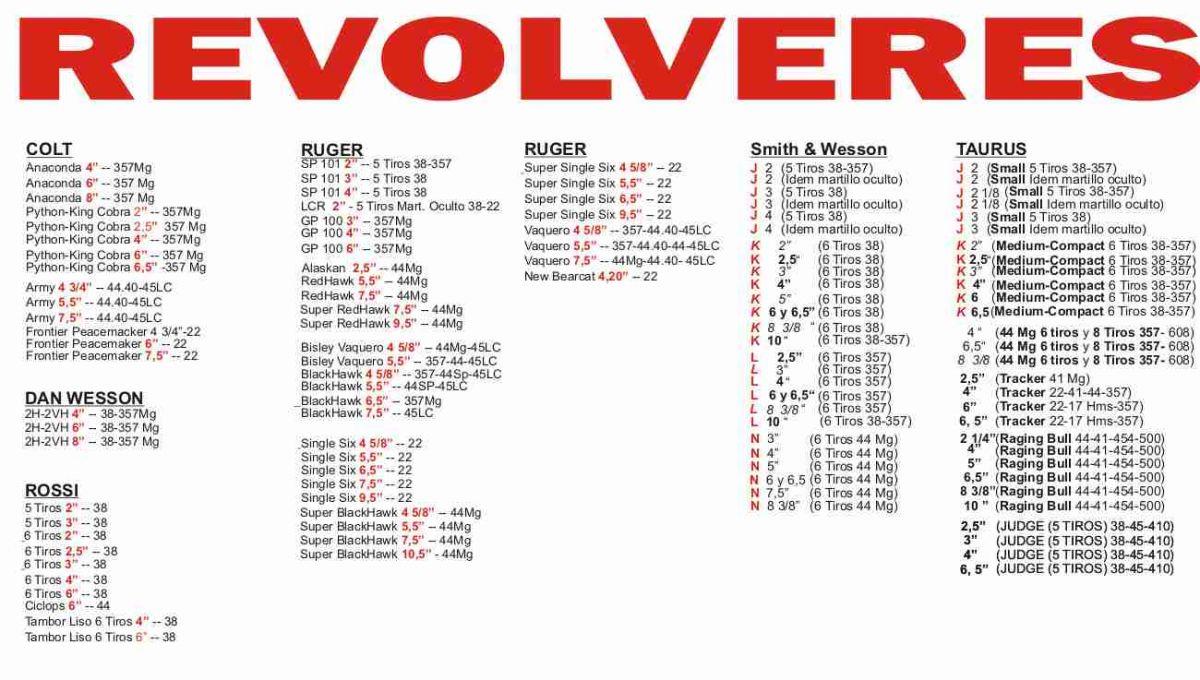 Contamos con mas de 100 replicas de revolveres, teniendo en cuenta marca, modelo, largo de cañon y calibre.